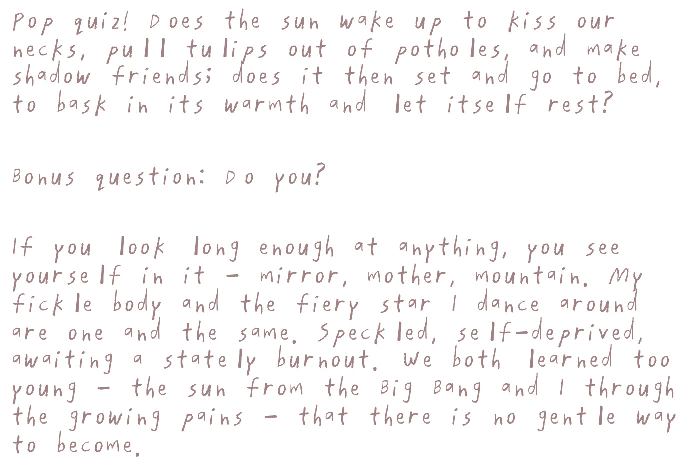 the essay about the sun 𖤓this was a page of my webstore which is only open on and off. here it is now upon multiple requests... at your disposal always! i think this write still holds up 3 years later.priJun 29, 202461Sharederived from inkipri.comi am @inkipri on instagram & tumblrstay sweet! - Pri